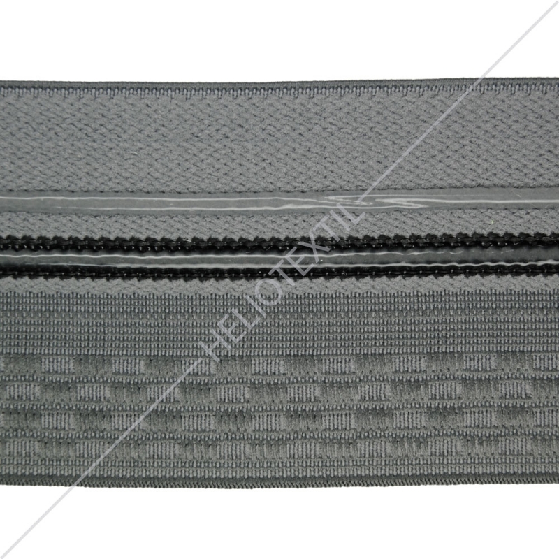 Jacquard elastic with exterior rubbers or silicone application used in the production of waistband. It’s possible to be produced in various widths and colors.