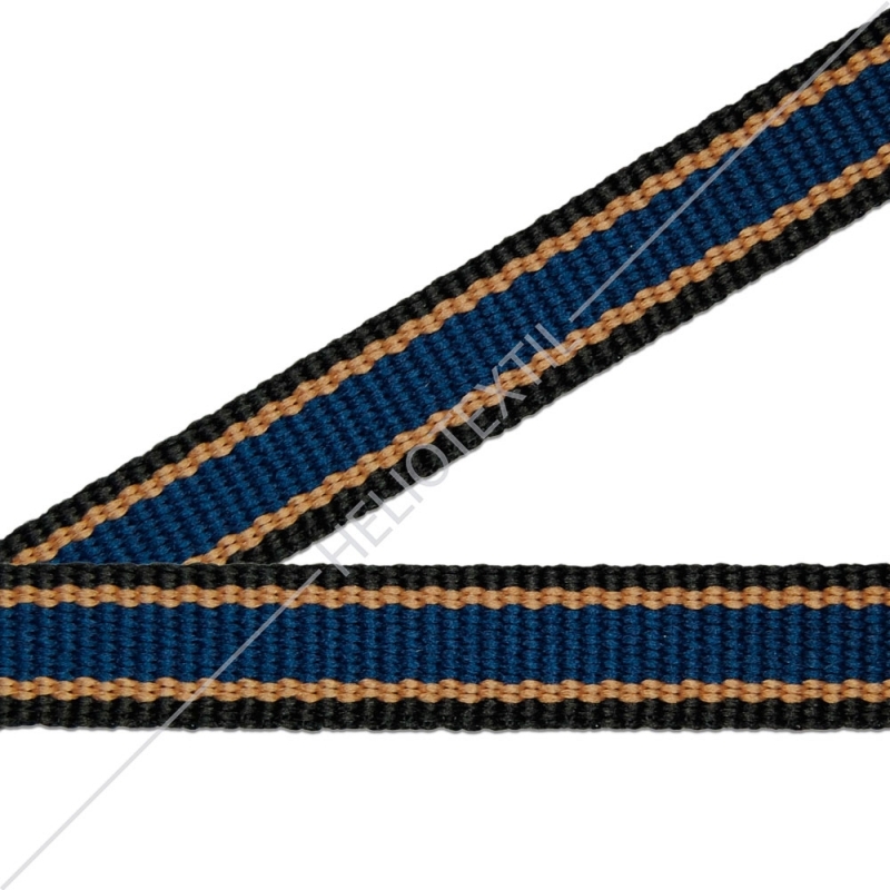 Ref. P 5505 - Ruban Polyester - Noir/Beige/Bleu - 10mm